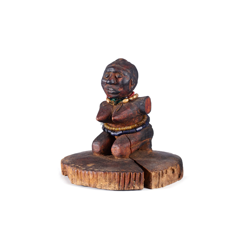 Le MEG conserve les 85 objets vendus lors de la faillite du « Village noir ». La liste de leur achat par le Musée archéologique en 1896 énumère seulement leurs apparences et usages supposés. Les inventaires du Musée d’ethnographie vont ensuite leur imaginer une origine géographique précise, par déduction « stylistique », occultant la raison de leur présence à Genève, leurs identités confuses ou plurielles, au profit d’une description ethnographique standardisée, et donc erronée. Sous la plume d’Émile Yung (1854-1918), alors professeur d’anthropologie raciale et client assidu du « Village noir » pour ses « mesures », la presse de 1896 promeut : « une salle remplie d’objets d’art, statuettes en bois et en ivoire, bibelots de tous genres, meubles, etc. qui n’est pas l’une des moindres curiosités de cette exposition ». Impossible de savoir s’il s’agit du lot saisi par l’Office des poursuites comme de comprendre la valeur qu’ont accordée les familles exhibées aux objets laissés sur place. F. Morin/MEG