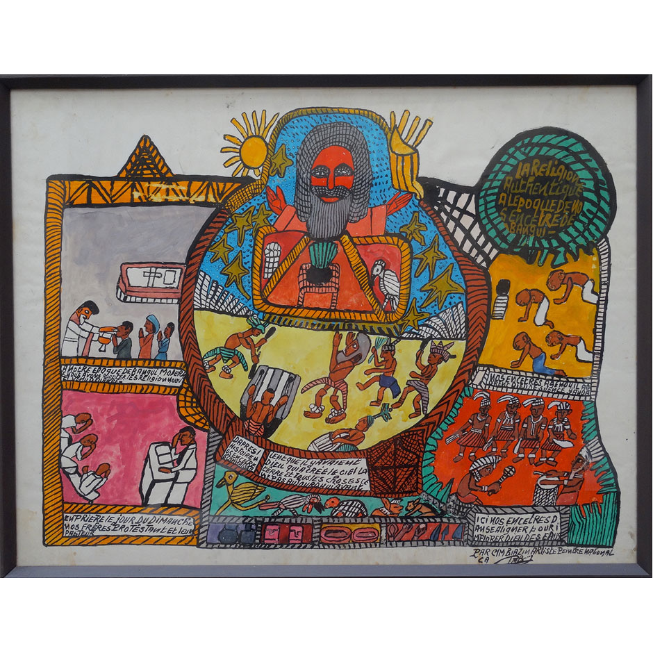 Méconnu en Centrafrique, son pays natal, Clément-Marie Biazin (1924-1981) est un acteur singulier de l’histoire de l’art africain au 20e siècle. Il a laissé à la postérité plusieurs centaines de gouaches, dont le style se caractérise par des couleurs éclatantes et une savante dysorthographie. Ses « récits en images et en mots » sont autant de chapitres de son grand manuel d’histoire. En effet, l’autoproclamé « peintre national centrafricain » a consacré son œuvre à documenter le passé immémorial dont le souvenir doit perdurer, pour soutenir la mémoire et l’identité collectives, malgré les ravages de l’esclavagisme puis du colonialisme en Afrique centrale. Son ambitieux projet d’édification des générations futures repose sur le constat suivant : « Une fois acquise l’indépendance, les Africains oublient tout ce qui était de la tradition et de la civilisation du passé, ce qui était de leur originalité. Il faudrait qu’il y ait aussi le passé, et le passé doit se joindre avec le futur, et cela pourrait conduire bien le pays. »
