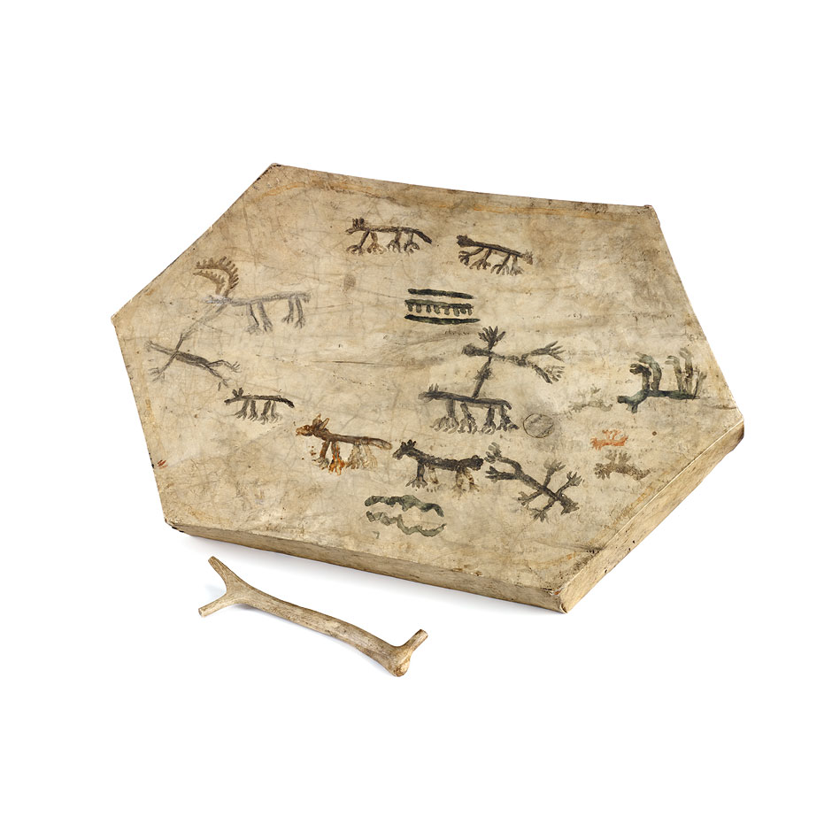 It is in their own particular history that we find the explanation of certain objects. For instance, the atypical shape of this drum, hexagonal instead of round, is probably due to an incident that occurred while an old man was making it for a traveller: the pine slat used for its frame broke and the fault was concealed by making other angles at regular intervals. The result, astonishing for a Sami, was good enough for a foreigner! We can guess this origin when reading the journal kept by the Genevan Jean-Louis Pictet (1739-1781) when he travelled to the north of Russia, in 1768-1769. Intended for astronomical observations, this journey was also the opportunity for the young scientist to collect birds that he had stuffed for his compatriot, the naturalist Horace-Bénédict de Saussure (1740-1791). And it was in the latter’s home that this curious drum would finally be found, part of a set of objects related to distant populations that his son would later leave to the Academic Museum, the MEG’s ancestor.